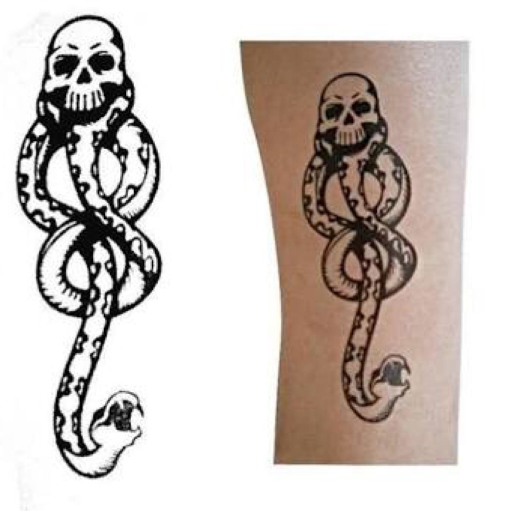 .| 21 tatuagens temporárias do harry potter que todos os fãs vão adorar. If you are a fan of harry potter and you don't want to get a tattoo to show your allegiance to the dark lord, then this amazing poster of the deatheater's mark is a must have. 9 pesos con 08 centavos $ 9.;